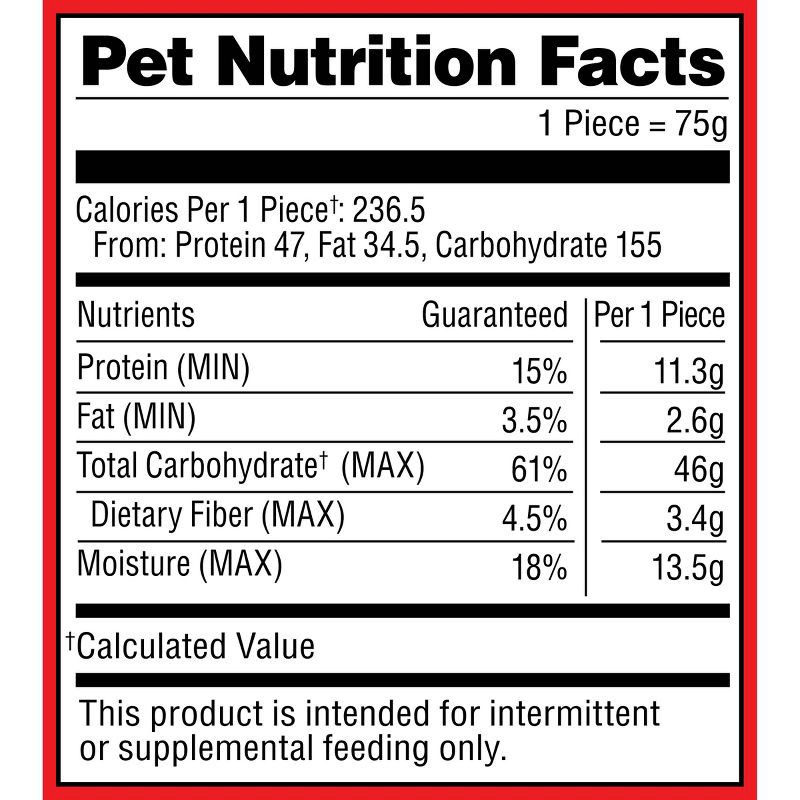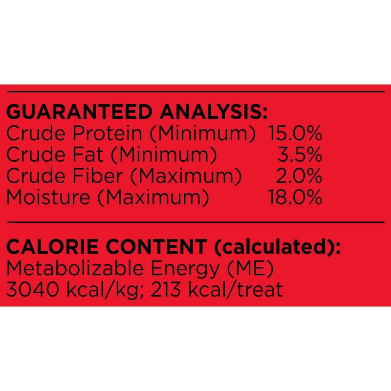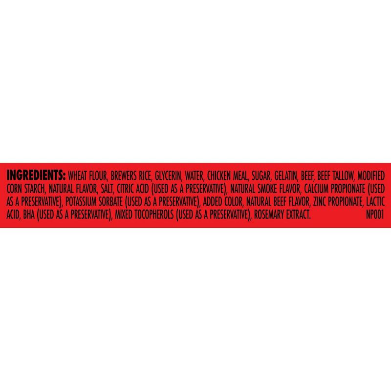 WHEAT FLOUR, BREWERS RICE, GLYCERIN, WATER, CHICKEN MEAL, SUGAR, GELATIN, BEEF, BEEF TALLOW, MODIFIED CORN STARCH, NATURAL FLAVOR, SALT, CITRIC ACID (USED AS A PRESERVATIVE), NATURAL SMOKE FLAVOR, CAL…