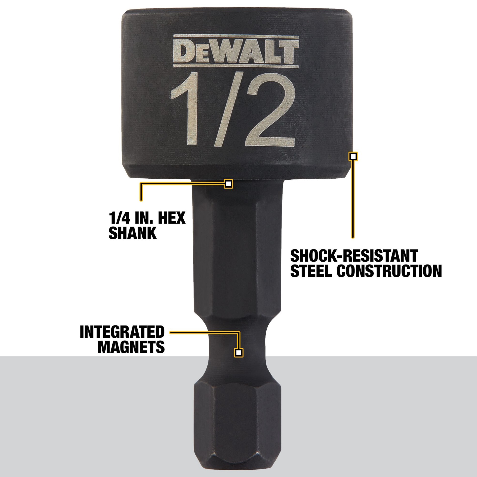 The DEWALT IMPACT READY 5-piece nut driver bit set features: Compact nut driver design allows for greater accessibility. 1/4-In hex-shank for compatability with impact drivers, locking bit holders and…