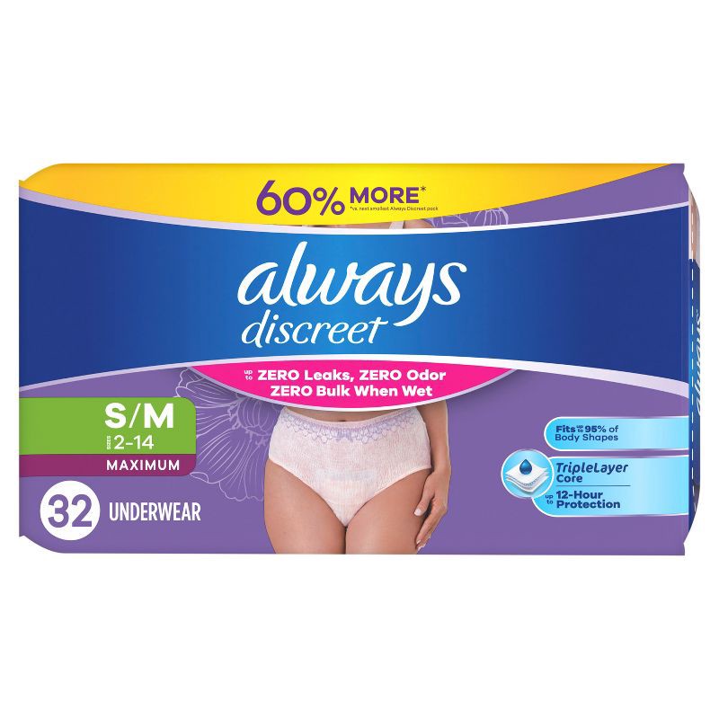 Try Always Discreet incontinence underwear for women. These reimagined adult diapers for women have up to zero leaks, zero odor, and zero bulk when wet for incontinence protection you can depend on. D…