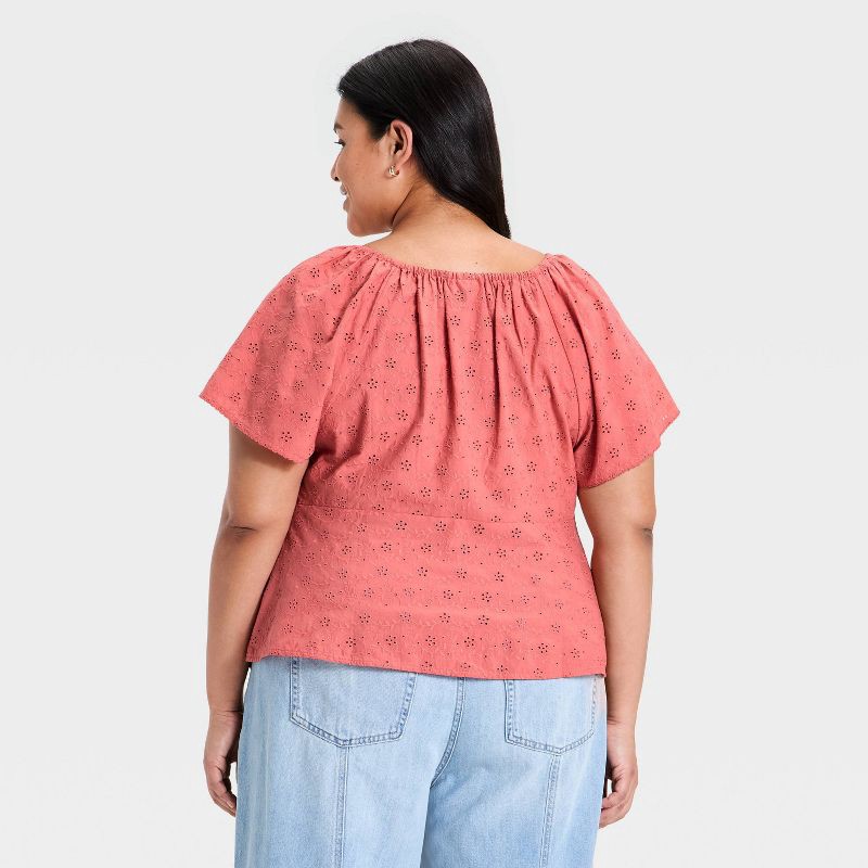 Women's Short Sleeve Eyelet Scoop Neck Blouse - Universal Thread™ Pink XXL