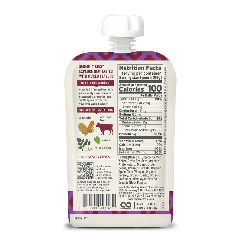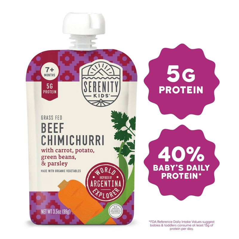 Serenity Kids World Explorer Grass Fed Beef Chimichurri with Organic Vegetables Baby Food Pouch - 3.5oz