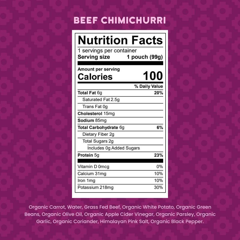 Organic Carrot, Water, Grass Fed Beef, Organic White Potato, Organic Green Beans, Organic Olive Oil, Organic Apple Cider Vinegar, Organic Cilantro, Organic Parsley, Organic Garlic, Organic Coriander, …