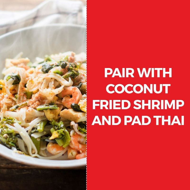 - Enjoy chilled with coconut-breaded fried shrimp, pad Thai