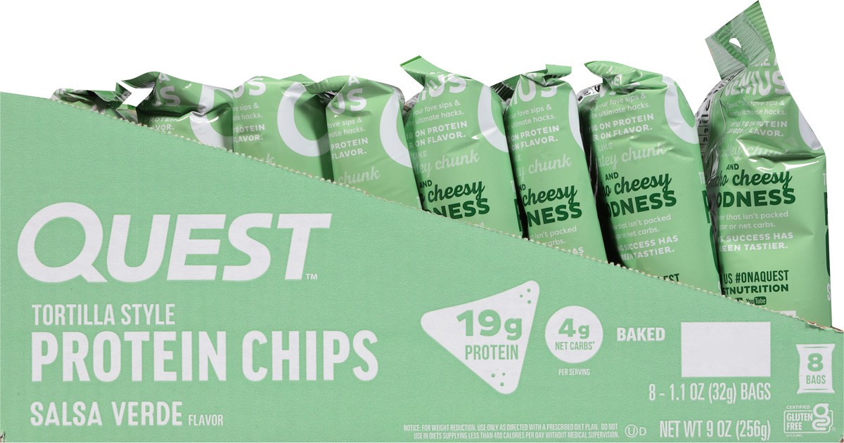 Quest Tortilla Style Salsa Verde Flavor Protein Chips - 8 ct 1.1 oz Bags