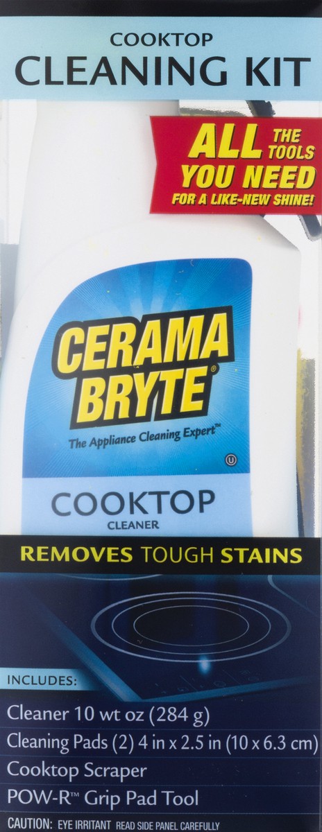 Includes: Cleaner 10 net oz (284 g). Cleaning pads (2) 4 in x 2.5 in (10 x 6.3 cm). Cooktop scraper. Pow-R grip pad tool. All the tools you need for a like-new shine! The appliance cleaning expert. Re…
