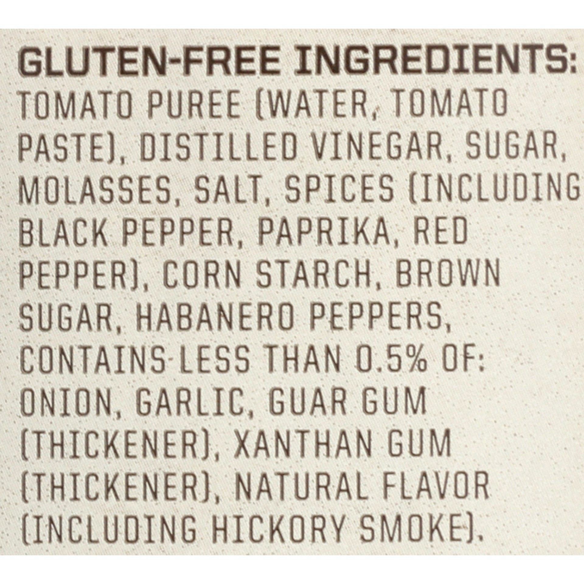 Tomato Puree (Water, Tomato Paste), Distilled Vinegar, Sugar, Molasses, Salt, Spices (Including Black Pepper, Paprika, Red Pepper), Corn Starch, Brown Sugar, Habanero Peppers, Contains Less than 0.5% …