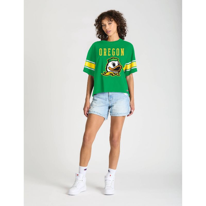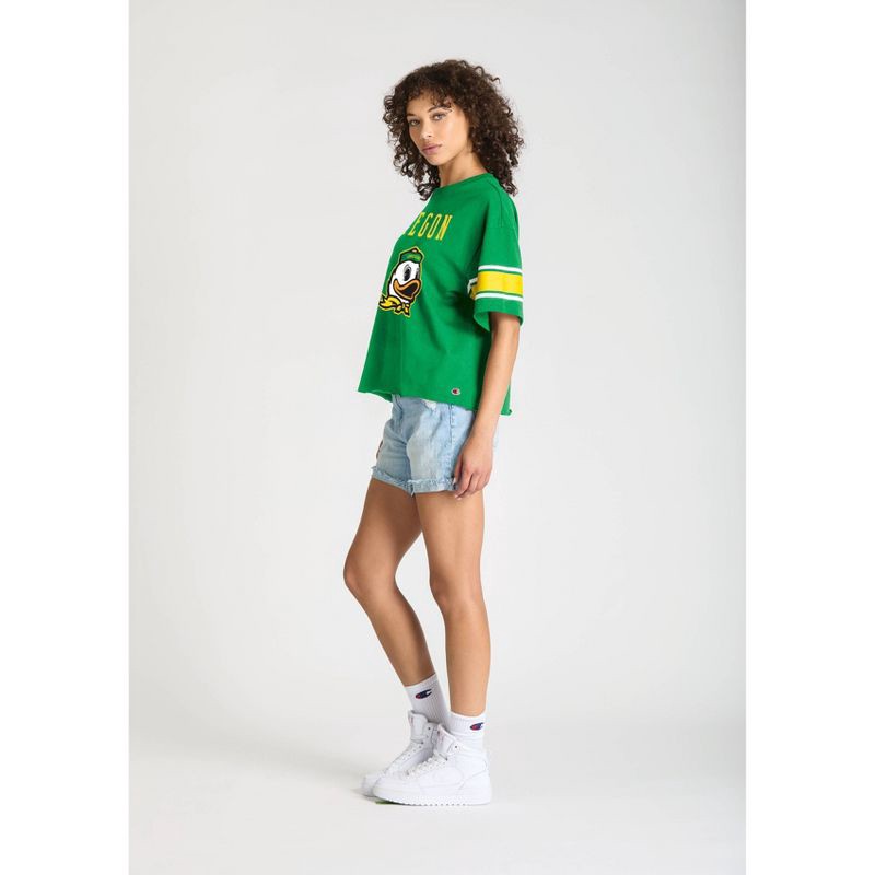 Show your team spirit with authentic Champion style in this enzyme-washed Short Sleeve Crew Tee. Made from 100% cotton in team dark colors, it features a bold front mascot graphic topped with shimmeri…