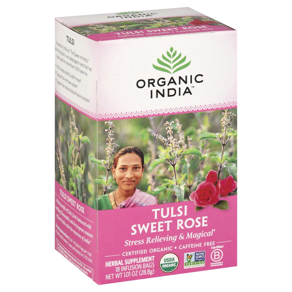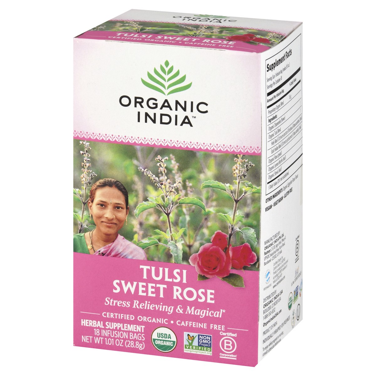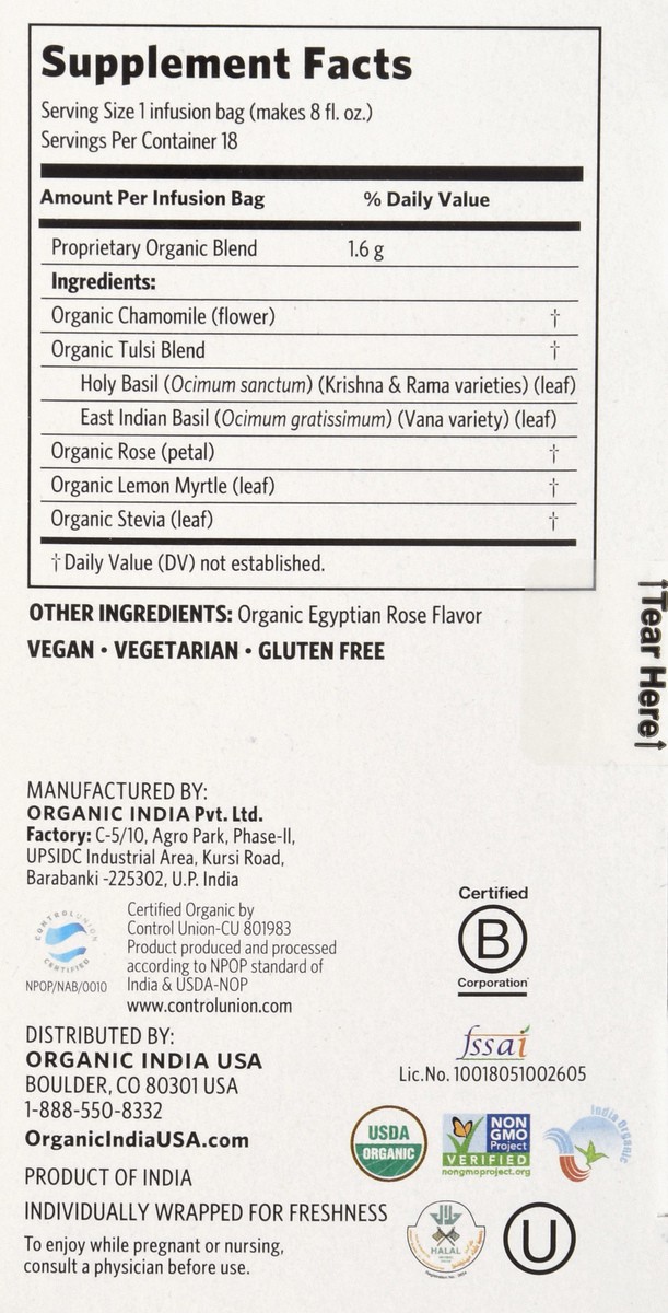 Organic India Tulsi Tea Organic Caffeine Free Sweet Rose 18 Count - 1.01 Oz