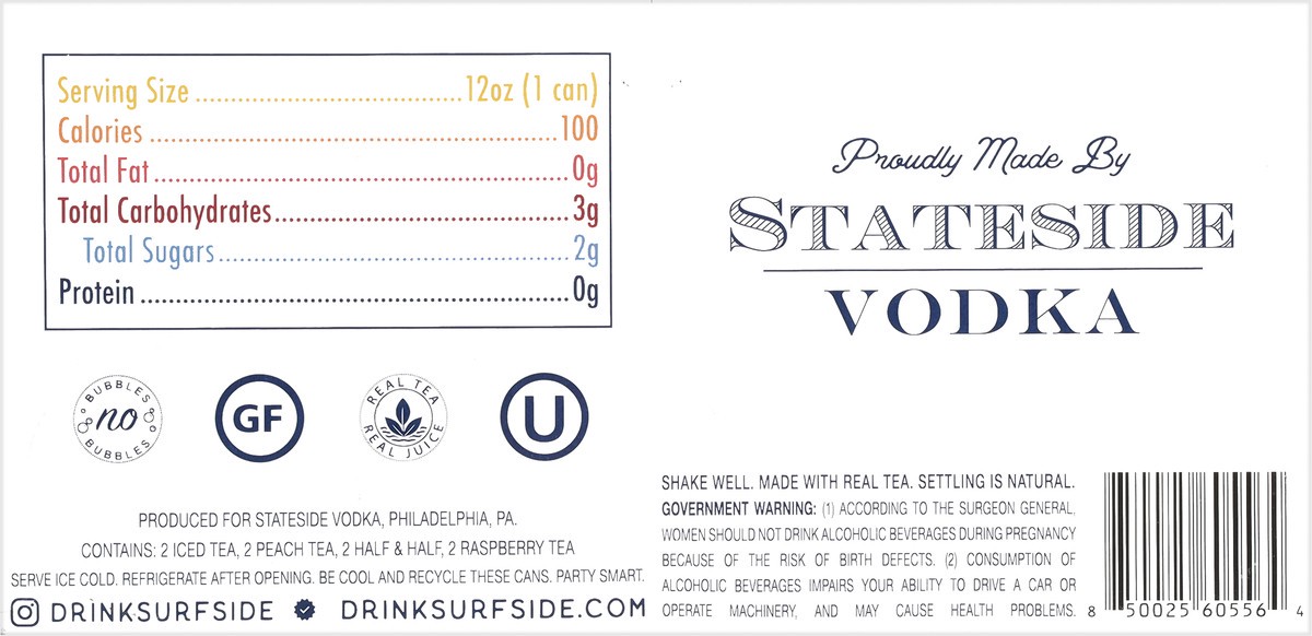 United States - 4.5% - Surfside Starter Packs include two cans of each of your favorite Surfside flavors: Iced Tea, Peach Tea, Lemonade, and Tea & Lemonade. Proudly made with Stateside Vodka from Phil…