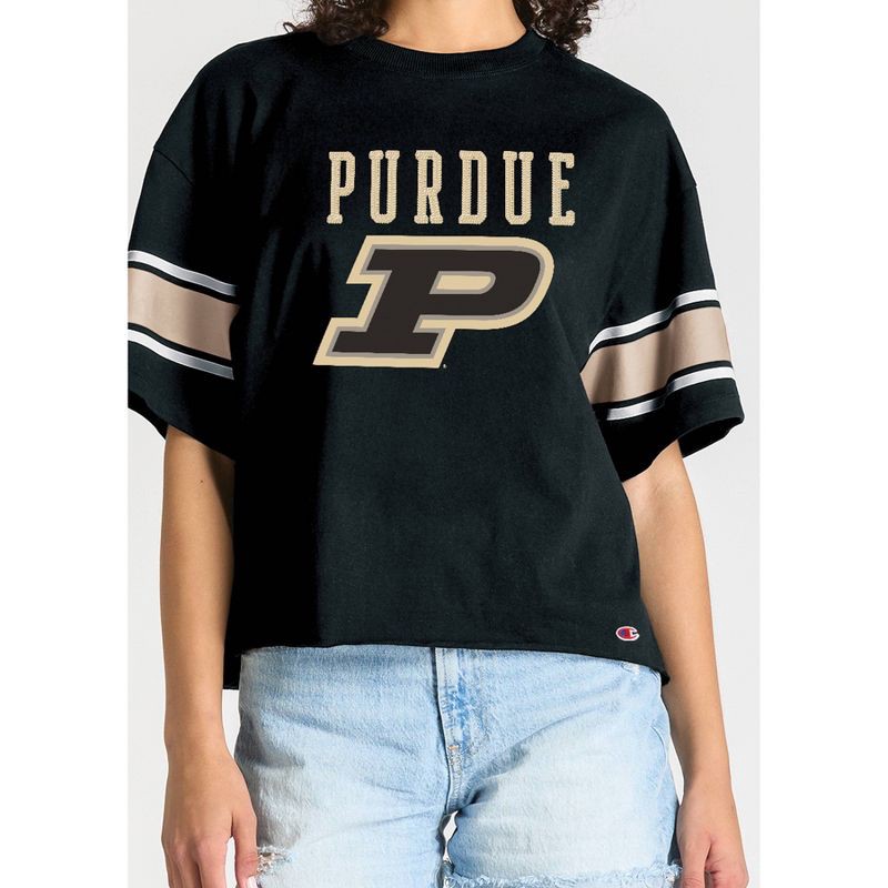 Show your team spirit with authentic Champion style in this enzyme-washed Short Sleeve Crew Tee. Made from 100% cotton in team dark colors, it features a bold front mascot graphic topped with shimmeri…