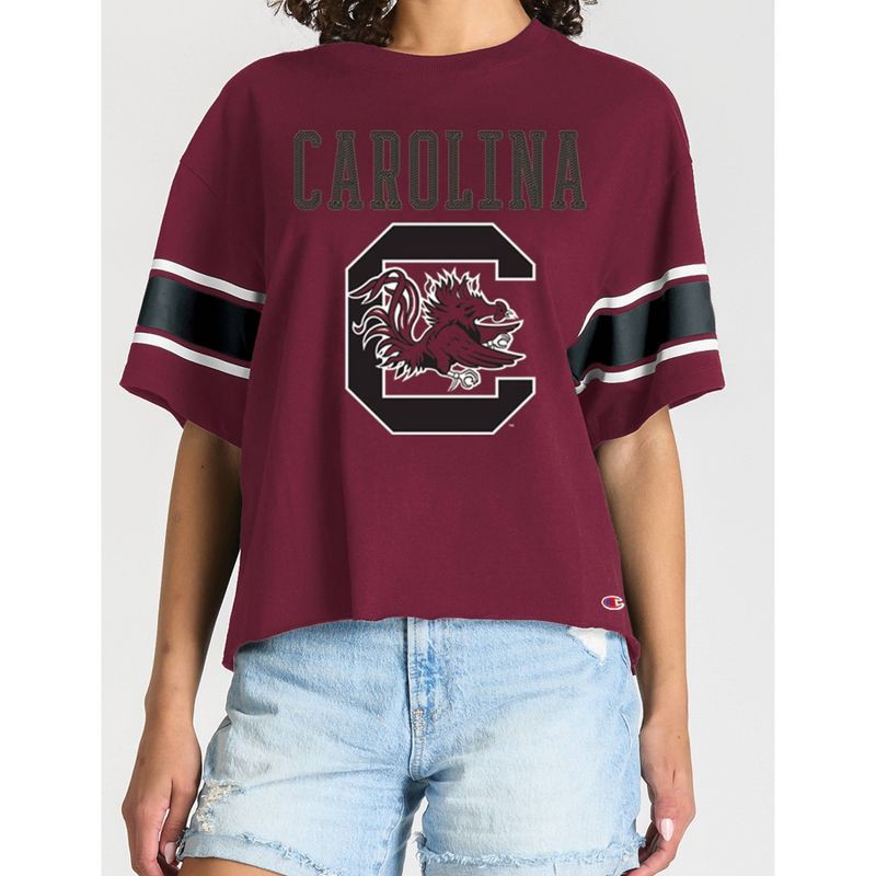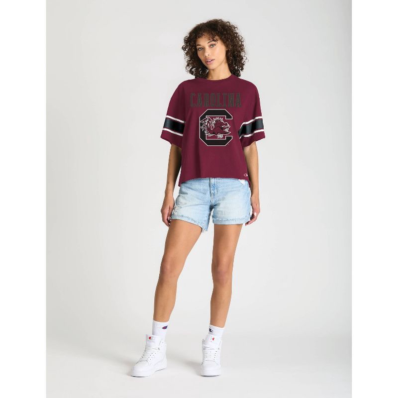 Show your team spirit with authentic Champion style in this enzyme-washed Short Sleeve Crew Tee. Made from 100% cotton in team dark colors, it features a bold front mascot graphic topped with shimmeri…
