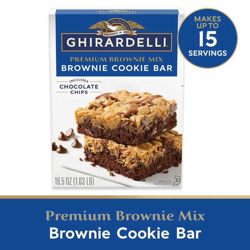 - One 16.5 oz Box of GHIRARDELLI® Brownie Cookie Bar Premium Brownie Mix