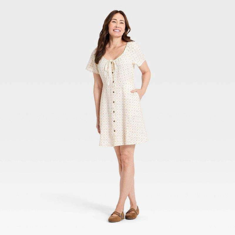 Women's Short Sleeve Button-Front Mini Sundress - Universal Thread™ Cream Floral M