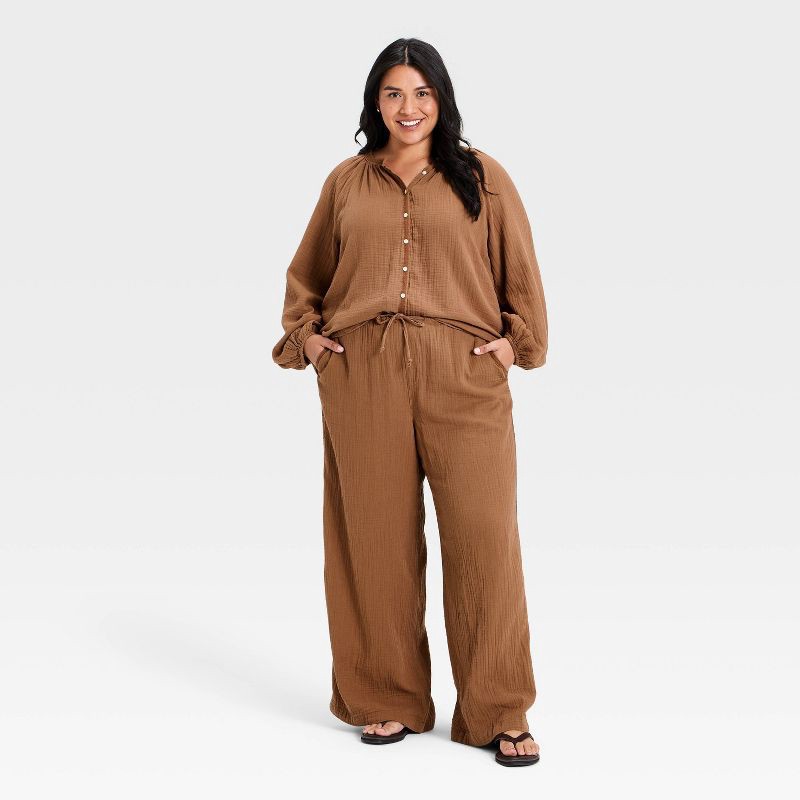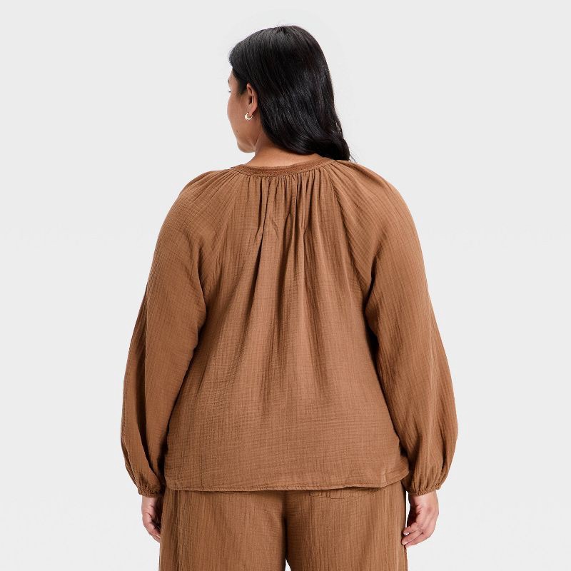 Women's Long Sleeve Gauze Button-Front Blouse - Universal Thread™ Brown XXL