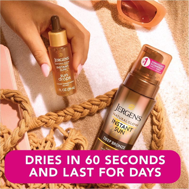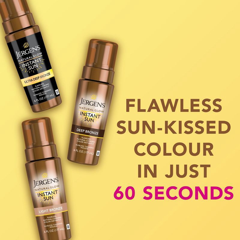 Get a beautiful, quick, natural looking tan in just 60 seconds by smoothing on streak-free Jergens Natural Glow Instant Sun Sunless Tanning Mousse. This lightweight, deep color mousse for body works w…