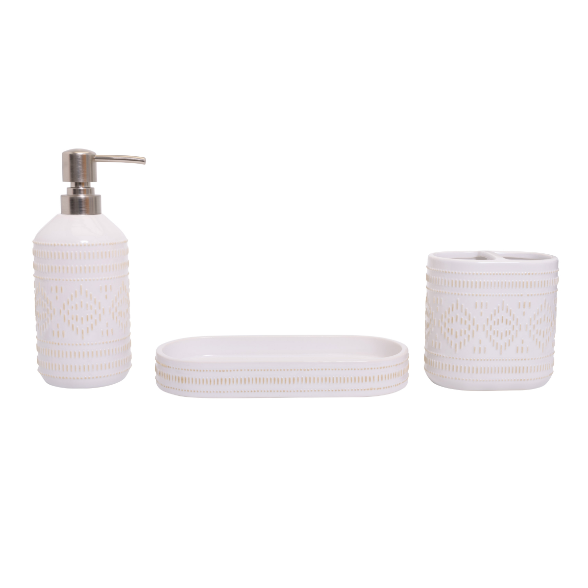 Room & Retreat Tribune 3-Piece Bathroom Accessory Set, White