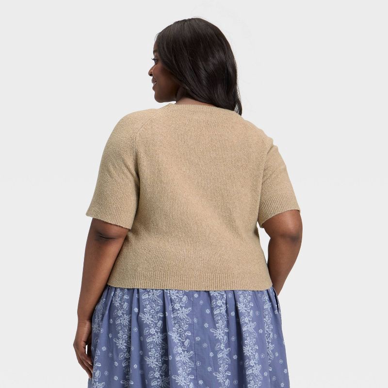 Stay cozy and stylish with this Short-Sleeve Crewneck Pullover Sweater from Universal Thread™. This short-sleeve sweater is made from soft, stretchy fabric for all-day comfort. It is fashioned in a cr…