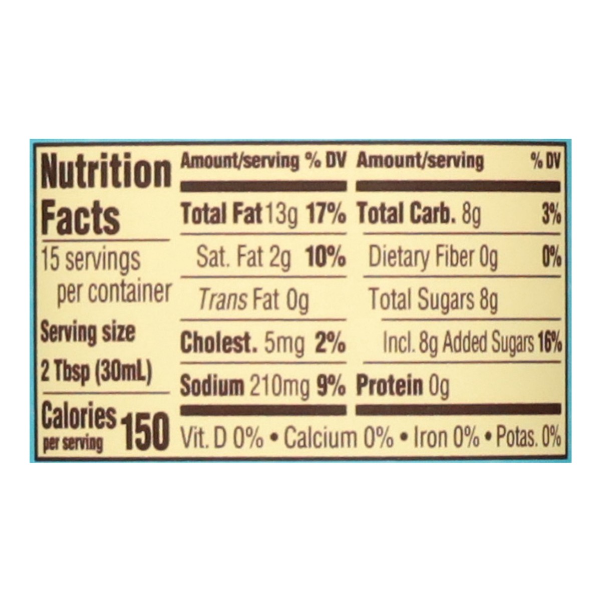 Soybean Oil, High Fructose Corn Syrup, Water, Vinegar, Contains Less than 2% of: Tomato Paste, Salt, Mustard Flour, Egg Yolks, Cider Vinegar, Pineapple Juice Concentrate, Lemon Juice Concentrate, Dehy…