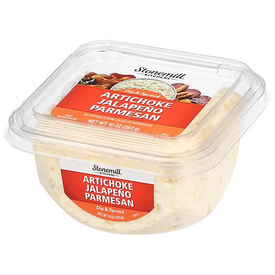 Stonemill Kitchens Artichoke, Jalapeño & Parmesan Premium Dip combines zesty jalapeños, cool sour cream and savory Parmesan cheese to create a dip that is tasty as a snack or appetizer with your favor…