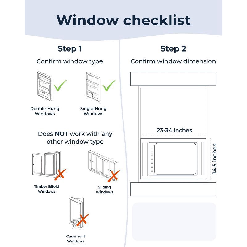 - Fits most standard windows with 115V power: Designed for windows 23 in. to 34 in. wide with a minimum vertical opening of 14.5 in., and plugs into a standard household outlet with the attached power cord.