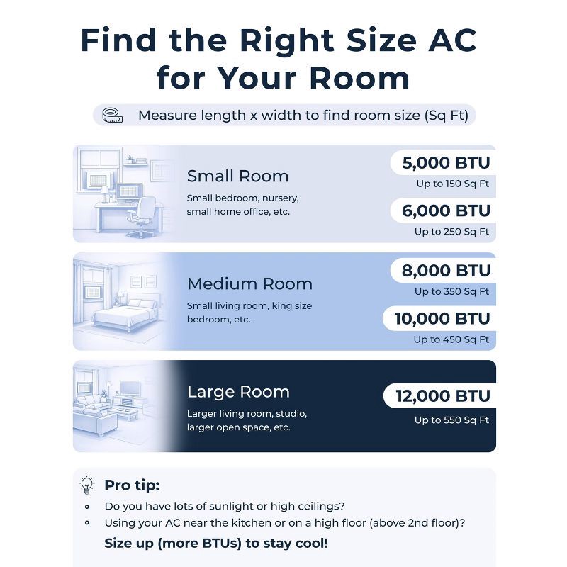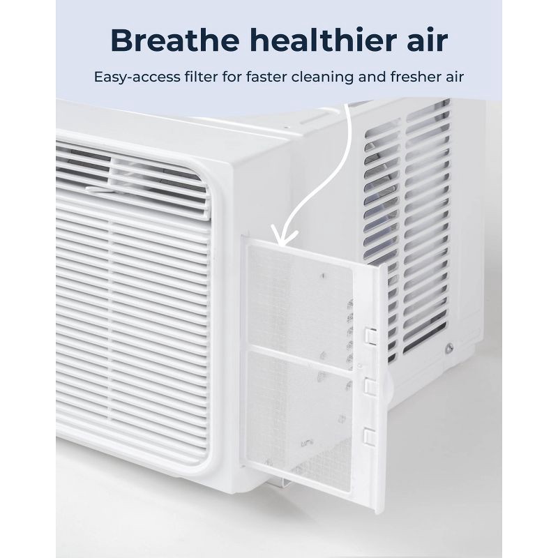 - 5,000 BTU window AC for small rooms: Cools spaces up to 150 sq. ft., making it a dependable choice for bedrooms, dorms, home offices, and other compact areas.