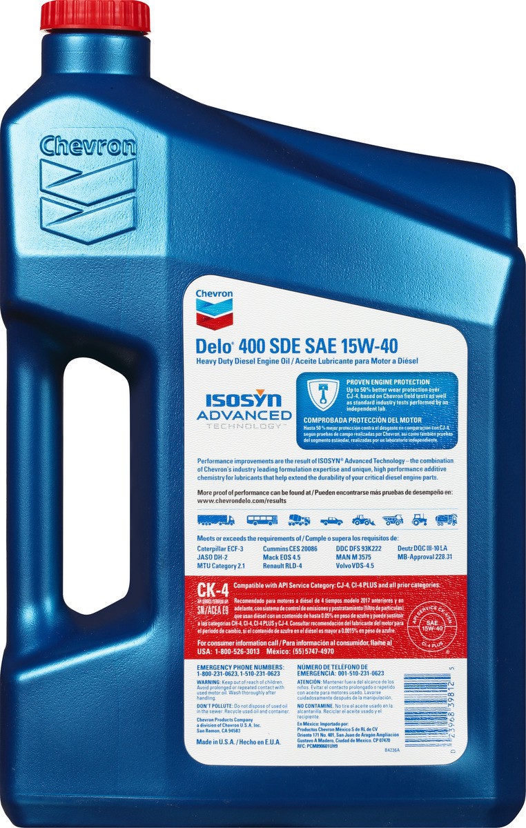 Chevron Delo 400 SDE SAE 15W-40 Heavy Duty Diesel Engine Oil 1 gl
