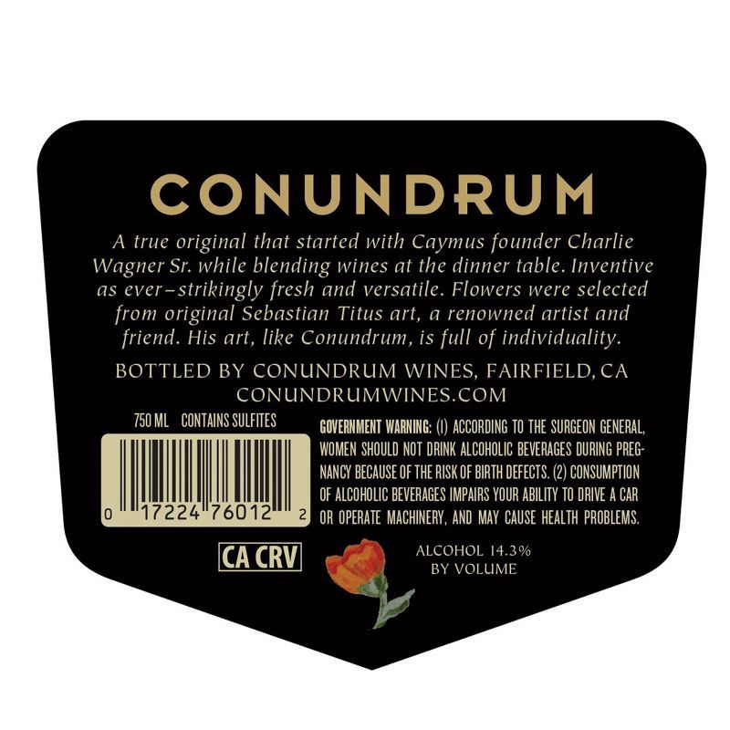 Sourced from premier California winegrowing regions, Conundrum Red features dark red varietals including Zinfandel, Petite Sirah and Cabernet Sauvignon. It is serious yet lighthearted, complex and app…