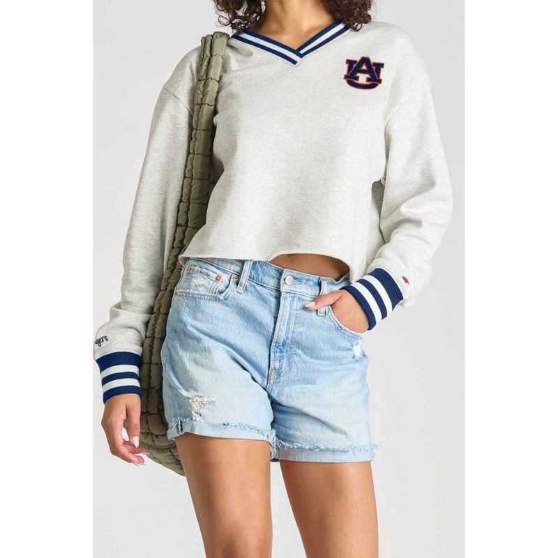 NCAA Auburn Tigers Women's Champion Ash V-Neck Sweatshirt - XL