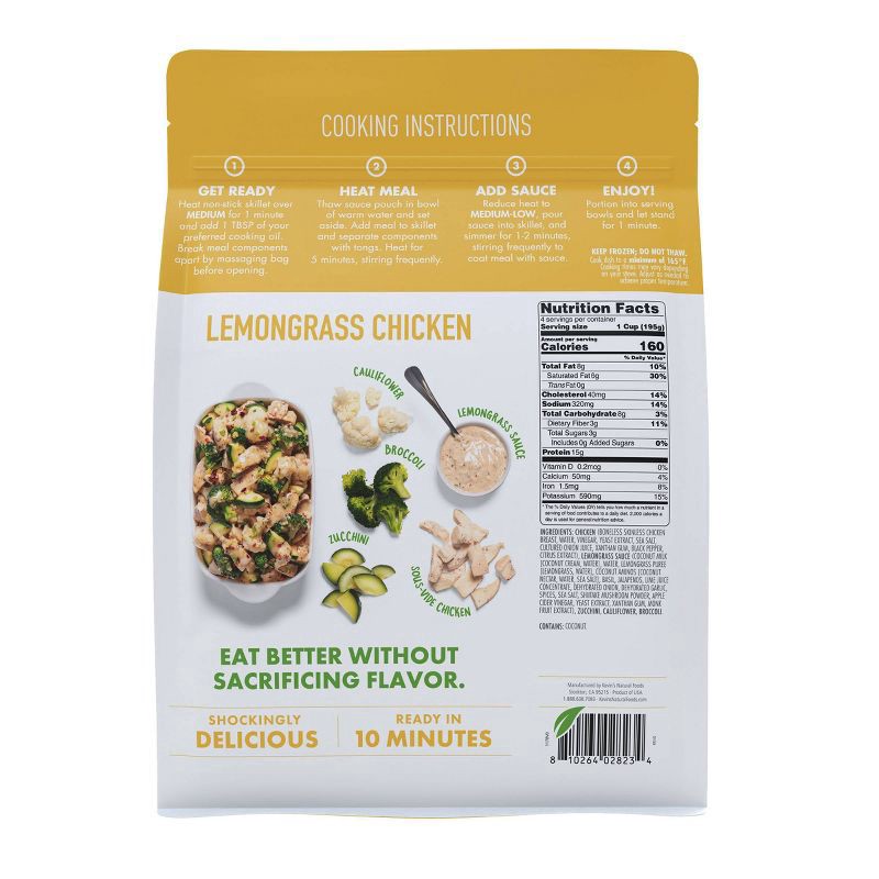Chicken (Boneless Skinless Chicken Breast, Water, Vinegar, Yeast Extract, Sea Salt, Cultured Onion Juice, Xanthan Gum, Black Pepper, Citrus Extract), Lemongrass Sauce (Coconut Milk [Coconut Cream, Wat…