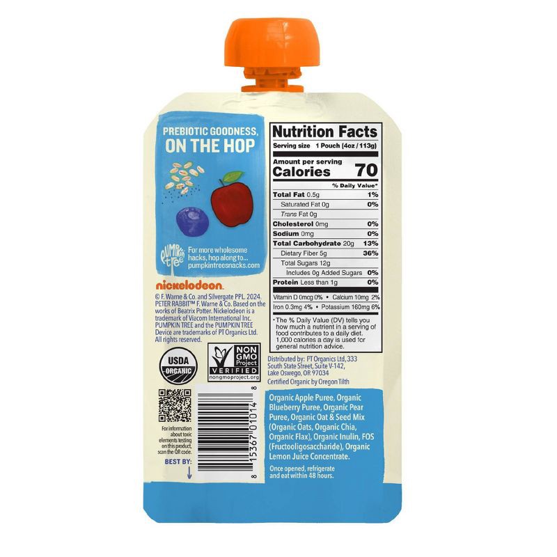 Peter Rabbit Organics Prebiotic Fiber Oats and Seeds Apple Blueberry Pureed Baby Food - 4oz: Organic Certified, Non-GMO Certified, Ready to Eat