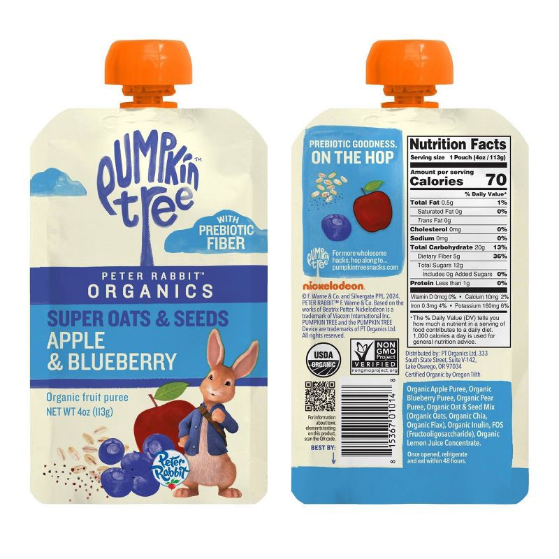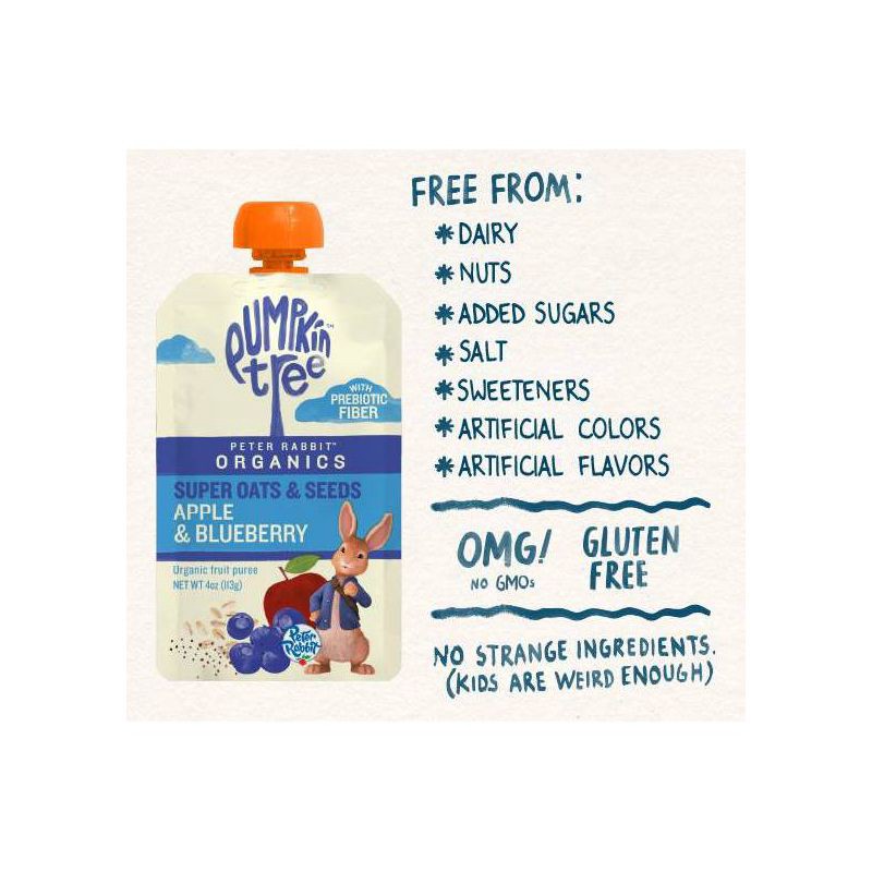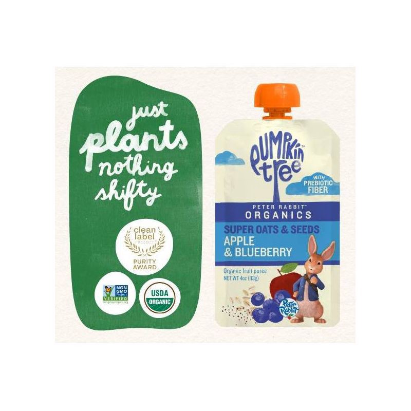 Keep your little one from getting 'hangry' with Pumpkin Tree Peter Rabbit Organics Apple Blueberry Prebiotic Fiber Oats and Seeds pouches. Our simple and tasty plant based pouches are Clean Label Proj…