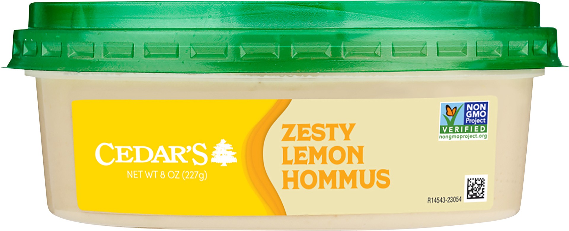 Steamed Chickpeas (Chickpeas, Water), Sunflower Oil, Olive Oil, Sesame Tahini (Ground Sesame), Lemon Zest, Citric Acid, Sea Salt, Lemon Peel, Garlic, Guar Gum, Cumin, Lemon Oil.