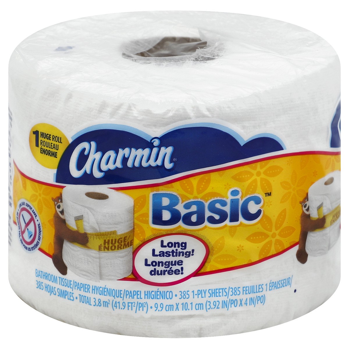 385 1-ply sheets. 41.9 sq. ft (3.8 sq. m) 3.92 in X 4 in (9.9 cm X 10.1 cm). Long lasting! Clog safe. Septic safe. Facebook. Twitter. Join the conversation with Charmin and don''t forget to enjoy the …