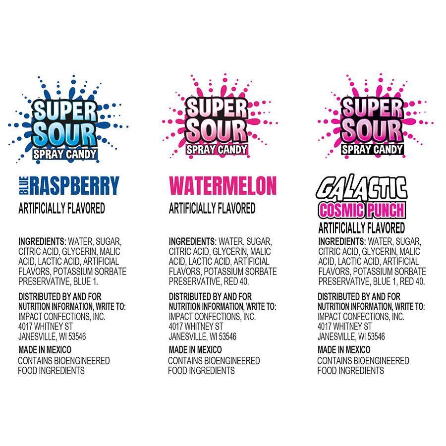 Ages 4 & up Artificially flavored. For nutrition information write to: Impact Confections, Inc. 4017 Whitney St Janesville, WI 53546. Made in USA. Plastics made in China.
