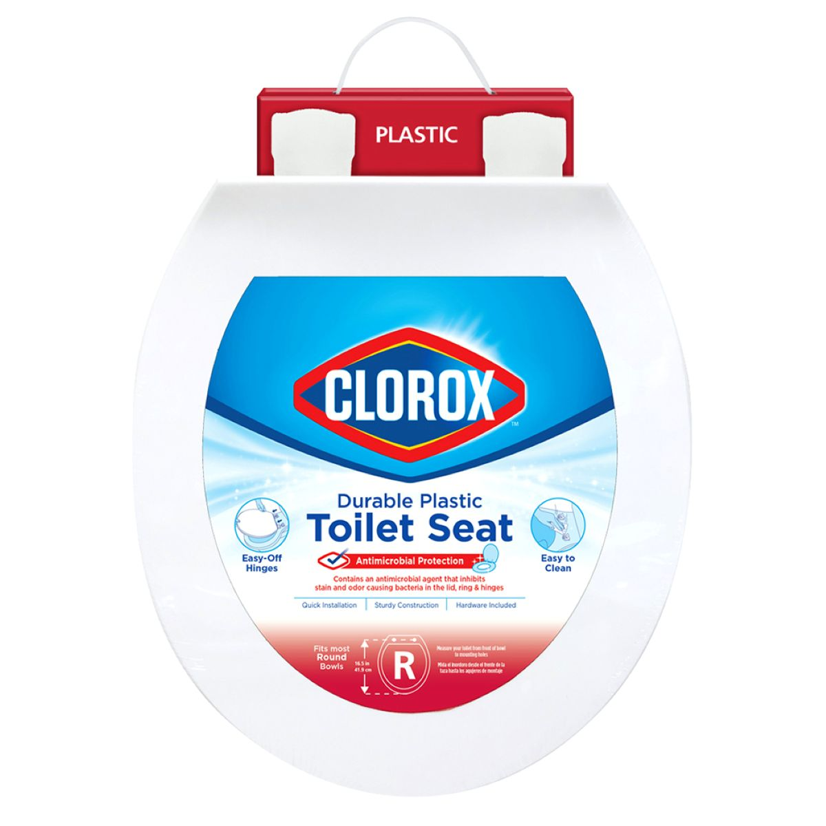 Clorox Round White Plastic Toilet Seat with Easy Off Hinge