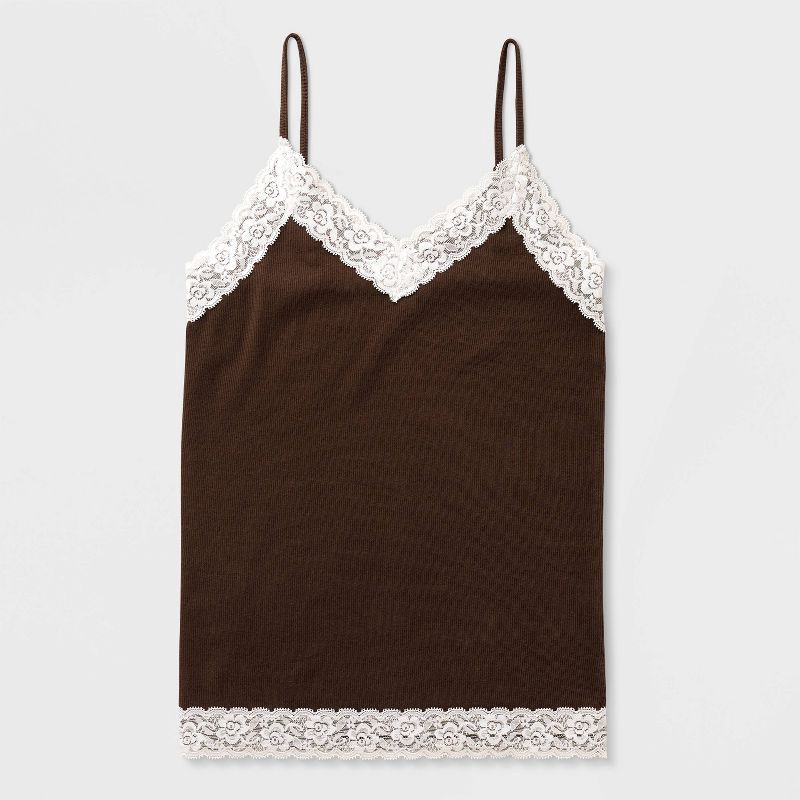 Women's Ribbed Lace Trim Cami - Wild Fable™ Brown XXS