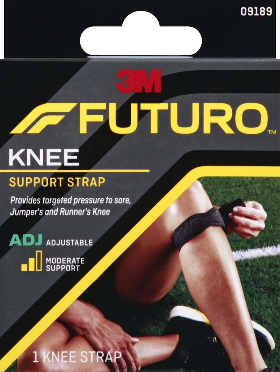 Provides targeted pressure to store, jumpers and runner''s knee. ADJ Adjustable. Moderate support. Breathable material. (1) Center pad delivers targeted pressure to sore tendon. (2) Reinforced pad des…