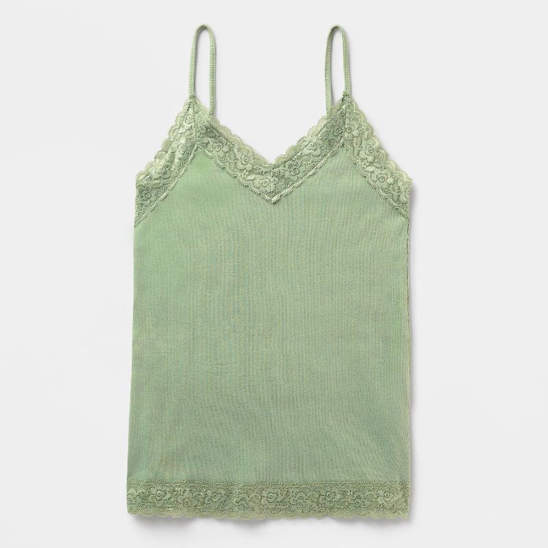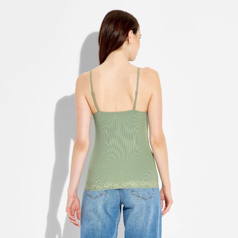 Women's Ribbed Lace Trim Cami - Wild Fable™ Fern Green M