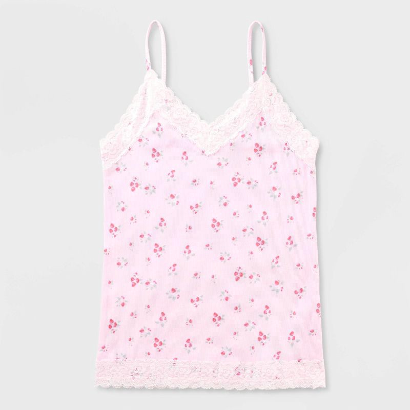 Women's Ribbed Lace Trim Cami - Wild Fable™ Light Pink Strawberries M