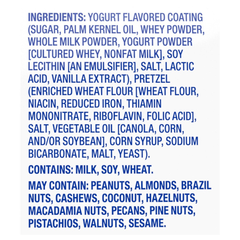 Yogurt Flavored Coating (Sugar, Palm Kernel Oil, Whey Powder, Whole Milk Powder, Yogurt Powder [Cultured Whey, Nonfat Milk], Soy Lecithin [an Emulsifier], Salt, Lactic Acid, Vanilla Extract), Pretzel …