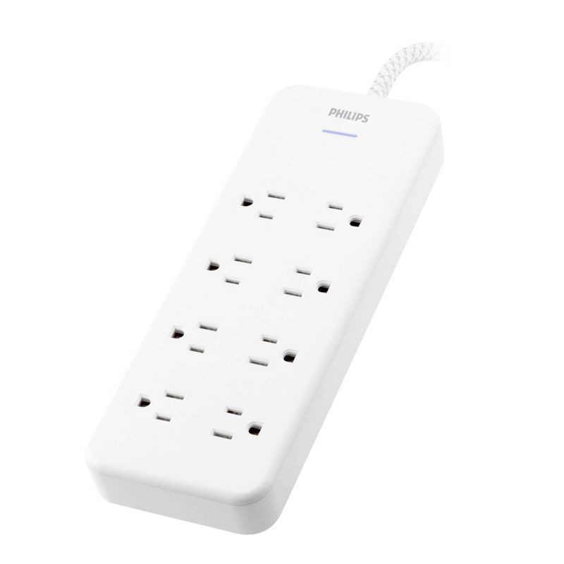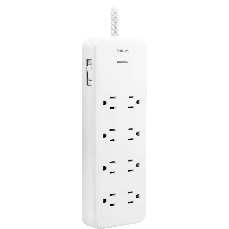 Philips 8-Outlet Surge 8' braided cord 2160J Adapter-Spaced - White