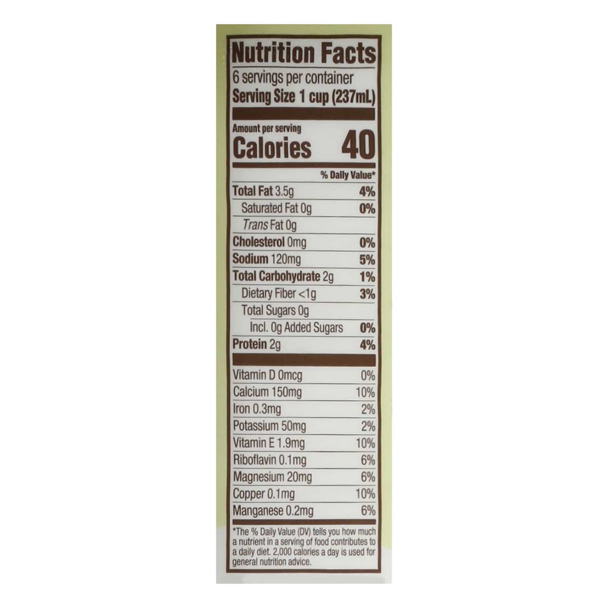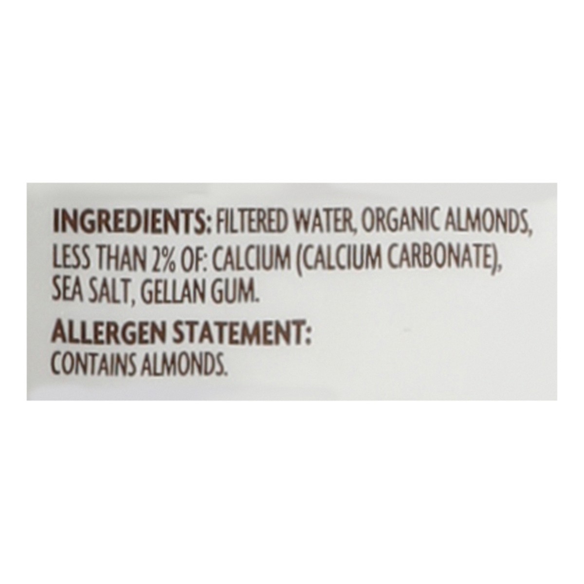 Filtered Water, Organic Almonds, Less than 2% of: Calcium (Calcium Carbonate), Sea Salt, Gellan Gum.