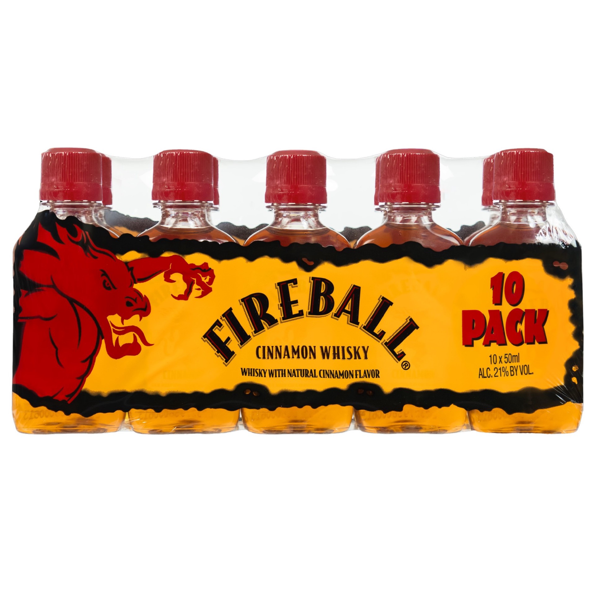 - Ten 50ml plastic bottles of Fireball Cinnamon Wine Based Liqueur