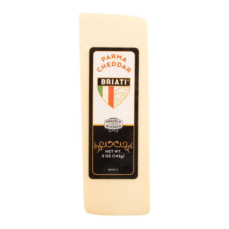 Briati Parma Cheddar is known for its sweet, Sharp, nutty flavor. Inspired by Cheddar & Parmesan Cultures, Parma Cheddar is truly unique. Briati Parma Cheddar is handcrafted in the great state of Wisc…
