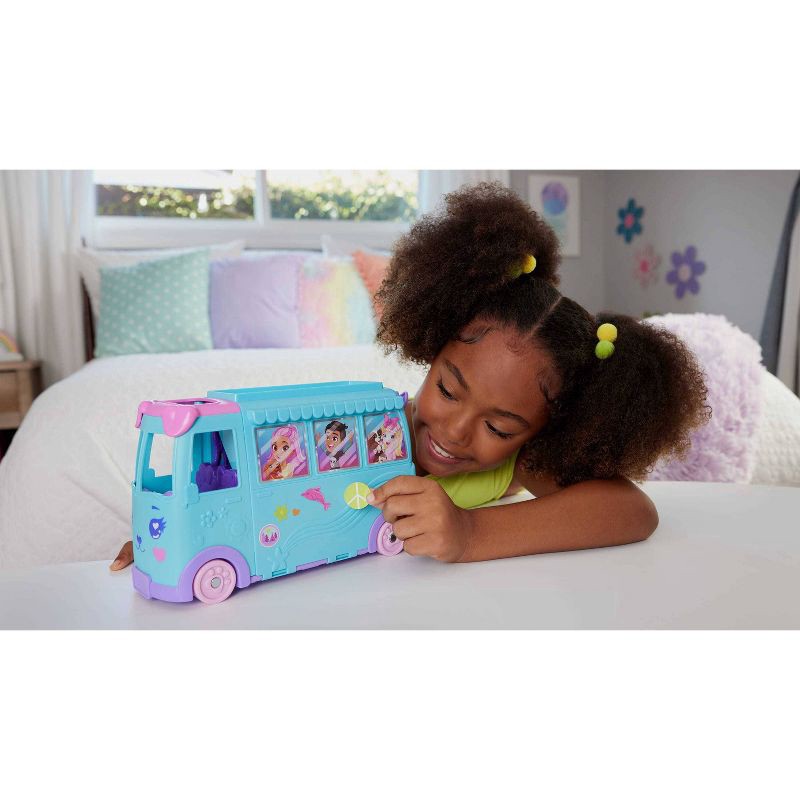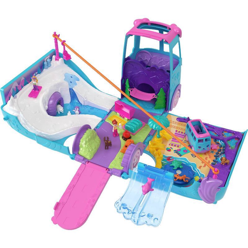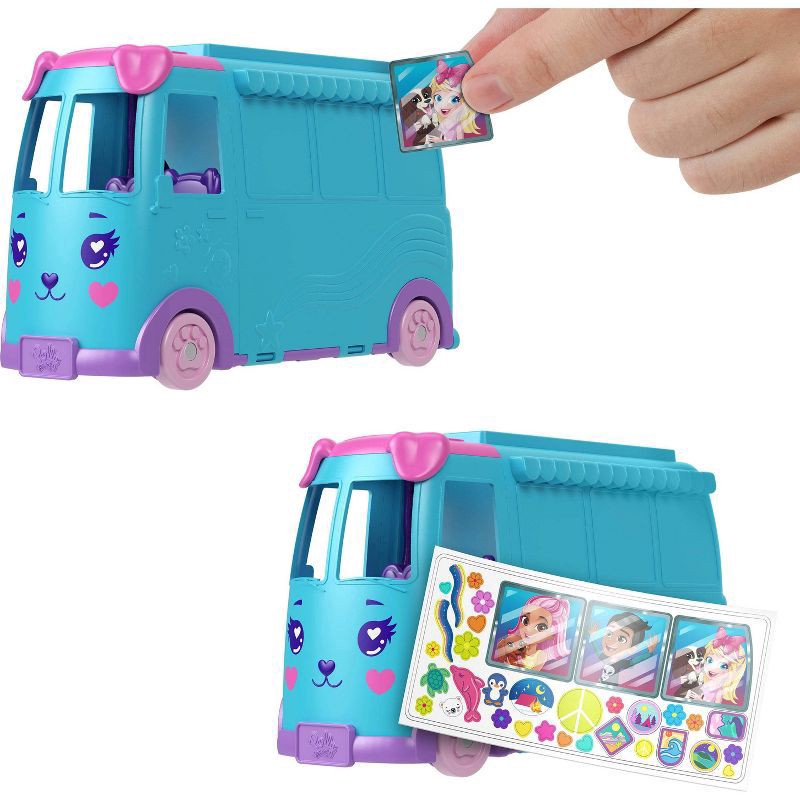 Join Polly Pocket and friends for a road trip in the transforming Pet Mobile Adventure Playset! Kids can decorate the pet-themed exterior with stickers before opening the van to a larger playset forma…