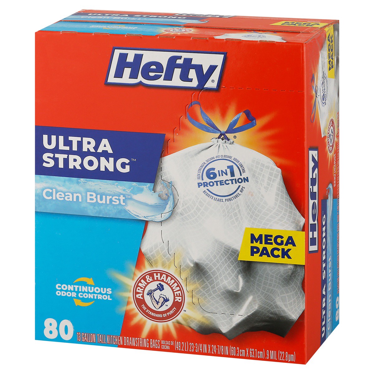 Hefty Ultra Strong 13 Gallon Clean Burst Drawstring Tall Kitchen Bags Mega Pack, 80 ea