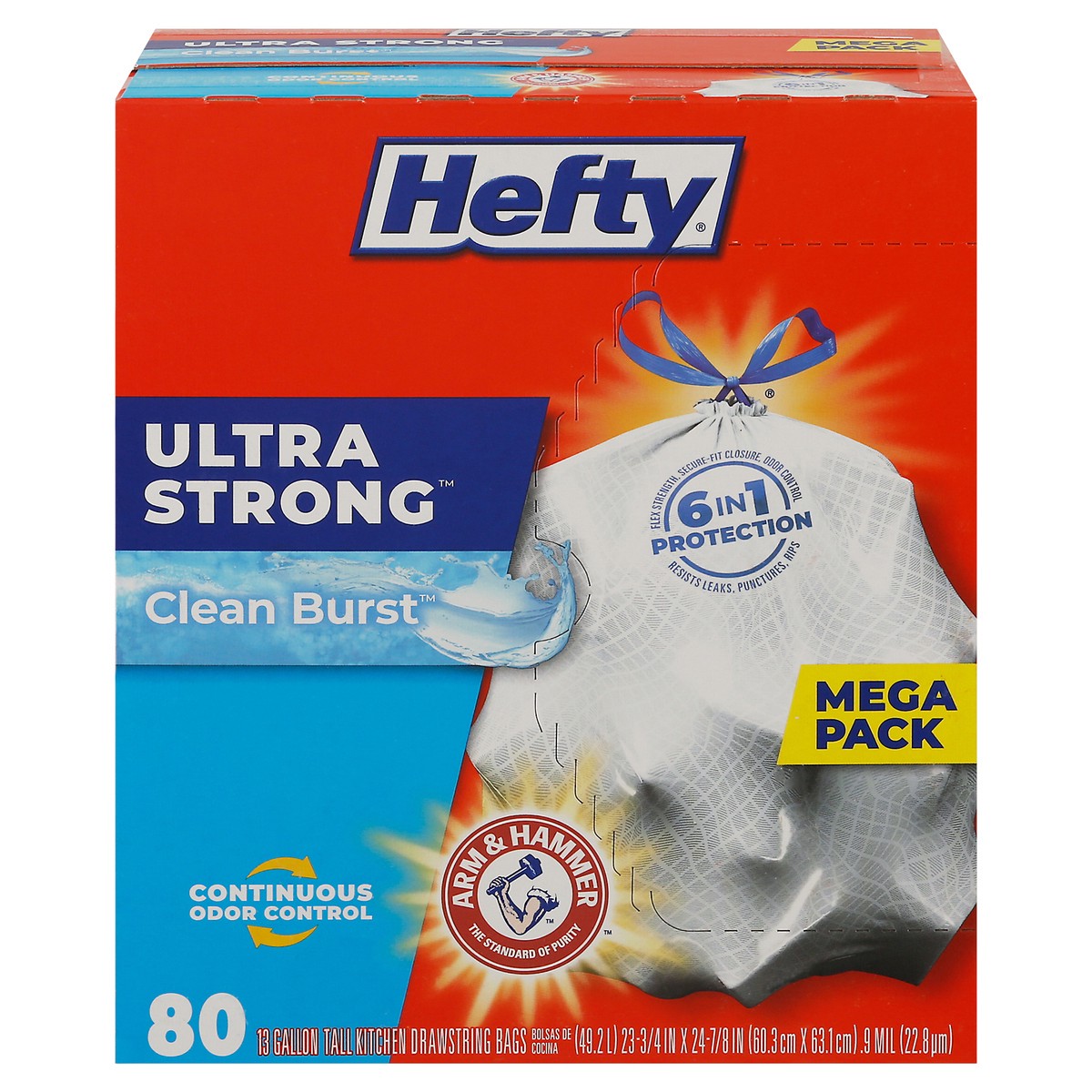 6 in 1 Protection: Flex strength, secure-fit closure, odor control. Resists: leaks, punctures, rips. Continuous odor control. Arm & Hammer: The standard of purity. 6 in Protection: 1. Flex strength. 2…