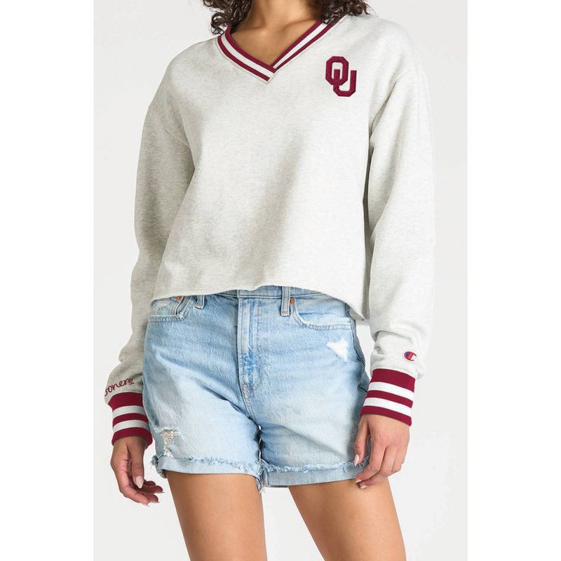 NCAA Oklahoma Sooners Women's Champion Ash V-Neck Sweatshirt - S