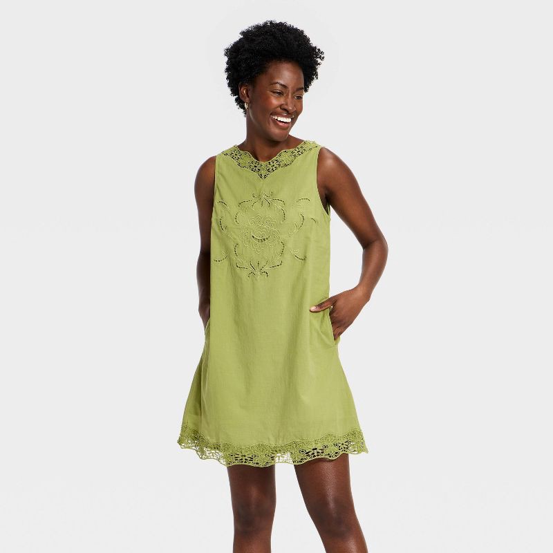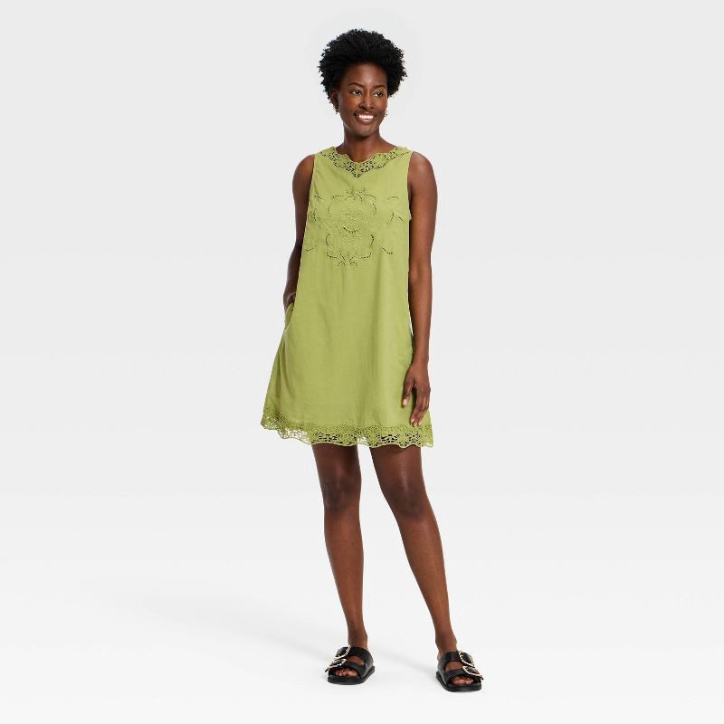 Women's Cutwork Mini Shift Dress - Universal Thread™ Olive Green S