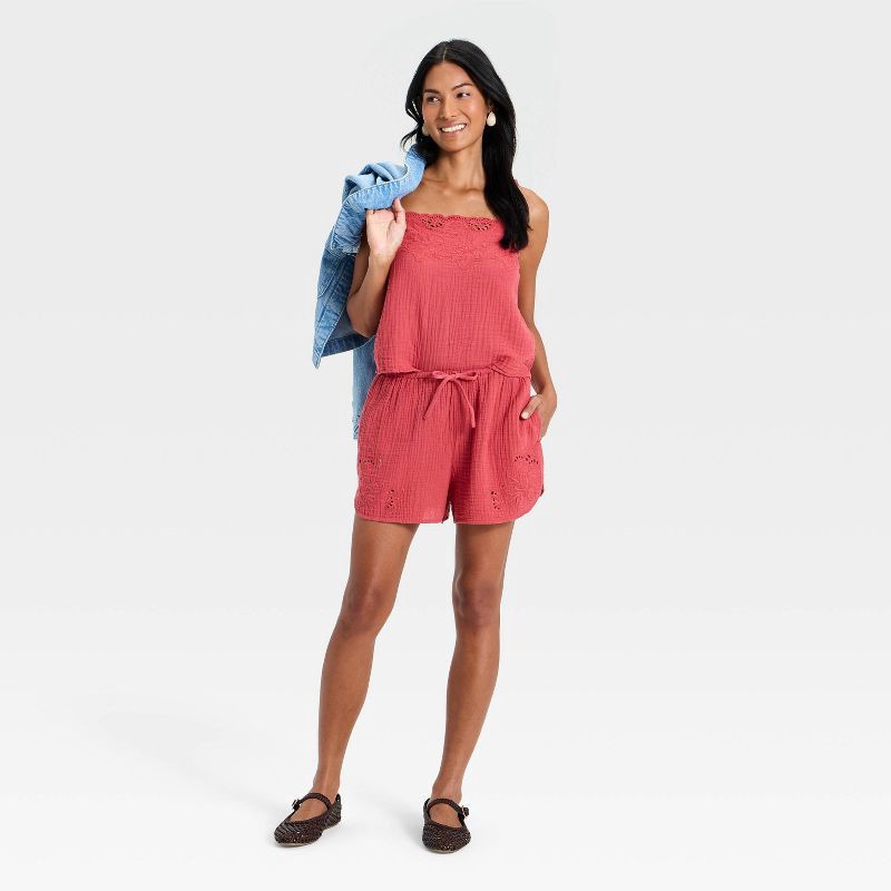 Women's Cutwork Tank Top - Universal Thread™ Berry Red M